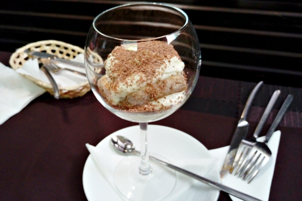 Заказала вместо фирменного десерта, за которым невозможно угнаться в этой кофейне. Ну, кокосовое тирамису для меня такое же новшество, как чайное. Интересный вкус, действительно напоминает батончик «Баунти», только десерт, конечно, лучше. Насыщенно сливочный, густой и плотный крем с обилием кокосовой мякоти покрывал хорошо пропитанные бисквитные печеньки. Недоставало только кофейного или ликёрного привкуса в пропитке, «савоярди» просто окунули в какой-то сироп. Но было вкусно, нежно, я с удовольствием доела до конца.
