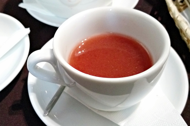 Чай был вкусный. Вовсе не такой сладкий, как предупреждал официант. Сиропа добавили в самый раз, он только чуть смягчал кислинку клубничного пюре. Да, ягодной мякоти положили от души, отчего напиток был густой и приятно натуральный. Мята в этом ансамбле была очень к месту — добавляла чаю терпкий горьковатый привкус и свежий аромат.