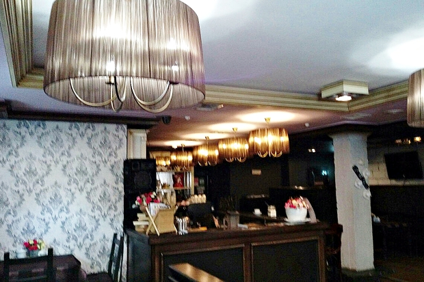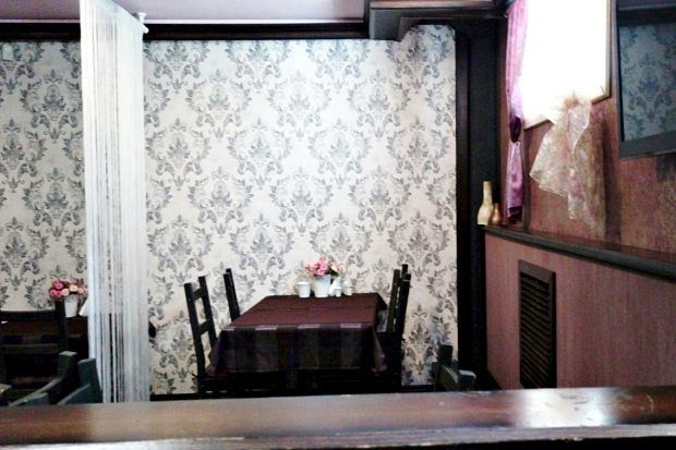 Всё помещение кафе оформлено так, что скорее вгоняет в депрессию, чем вдохновляет на грёзы. Комнатка в тусклом искусственном освещении «приукрашена» абажурами, хлипкими занавесочками и жуткими тряпочными розами в горшках. Самый потрясающий элемент декора — шторки-висюльки. Мне кажется, если бы я подошла поближе, они бы пахнули нафталином. В общем, натуральная бабулина комната, в которую ненадолго забежал маленький внук и расписал всё хештегами. Такое ощущение, что кто-то долго спорил, какую концепцию выбрать для кафе, а в итоге решили объединить и получилась сущая нелепица.