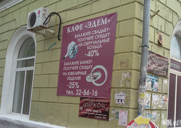 «Мягкие уголки платные — 100 рублей», — предупредил меня на входе очень серьезный мужчина. Это он о мрачных диванах в дальнем конце зала. Мягкими они совсем не выглядели. «Не очень-то и хотелось», — подумала я и уселась за столик с красными стульями поближе к окну. В пустом зале царил неприятный полумрак, над лестницей, ведущей на цокольный этаж здания, так и манила надпись: «Танцпол. Караоке. Бильярд».