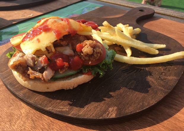 В моём понимании бургер — это что-то бОльшее, чем крупные куски мяса, огурцов, помидоров и не самого дорогого сыра, залитые кетчупом. Это особый соус. Это нарезано всё тоньше и аккуратнее. Это — а у нас всё-таки конец июня на дворе — огурцы, не похожие по вкусу на пенопласт. Ну и, наконец, это должно выглядеть как-то поэстетичнее. Если я захочу курицу с овощным салатом, я и закажу курицу с овощным салатом. Заказывая бургер, я жду бургер, а не разнобойный набор не самых вкусных даже по отдельности ингредиентов, зажатый промеж булки. И теперь спрашиваю себя: если даже фирменный бургер такой невкусный, то что ж тогда с остальными? В категорию «Попробовал — и не стану повторять».