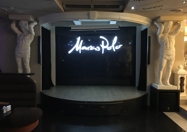 В «Марко Поло» жалеешь, что это не тот ресторан, где едят в темноте. Потому что еда, скорее, хорошая (а местами отличная), но интерьер может испортить аппетит иной деликатной натуре. Возможно, когда это место превращается в подобие клуба, всё это смотрится вполне себе гламурно, но на обед в будний день сюда стоит приходить, заранее настроившись смотреть на поддельного античного мужика с голым торсом. Зрелище не то чтобы духоподъёмное, но полученное гастрономическое удовольствие может скрасить эстетические страдания.
