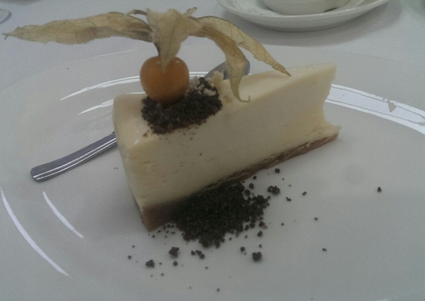 И зря. По консистенции десерт напоминал сладковатое сырое тесто или пластилин — и корж, и основа. Как будто творожный сыр слишком сильно взбили. А физалис был кислый.