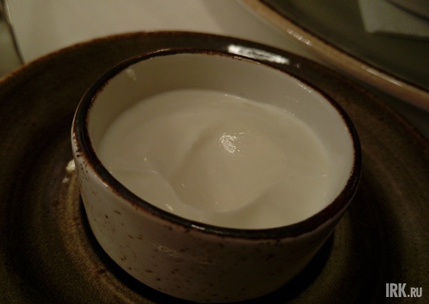 Сметана густая, прохладная и в меру жирненькая, как я люблю. Но если бы мне не сказали, что она копченая, я бы ни в жизнь этого не угадала. Однако знание — сила, я очень постаралась и уловила это еле заметное после-послевкусие. Похоже, ребята, ее действительно «коптили». Но это не точно. За блюдо «четверка» — я его съела почти, хоть и без восторга.