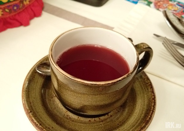 Обнаружили заварник под симпатичной чайной бабой. Горячий напиток поразил насыщенным ягодным вкусом и густой консистенцией, нежно обволакивающей горло. Не чай или вода со вкусом малины, смородины и брусники, а кисло-сладкий концентрированный горячий сок из этих ягод. Прекрасный напиток, «пятерочка».