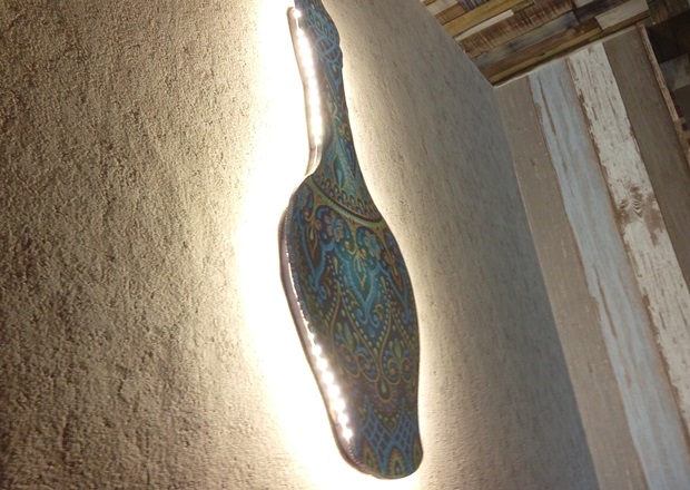 Обзор будет кратким, может, потому что была я тут тоже «вкратце», не рассиживалась — хотелось быстрее поесть и удрать. Уют — отнюдь не главное преимущество «Кебаб паба». Когда заходишь сюда, в голове как-то сразу возникает характеристика — харчевня. Стойкий запах солянки (хотя на бизнес-ланч в этот день подавали борщ), тусклый свет, неопрятные занавески, громадины-столы и лавки. На лавках какие-то страшные подстилки. Стены кое-как приукрасили светильниками в виде кувшина и масляной арабской лампы, что, увы, только подчеркнуло бедность убранства.