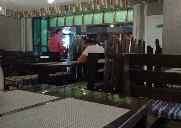 Динамики выплескивают музычку из специального сборника, название диска вывели на экран — «Забытые звезды 1980-2010». Их забудешь, ага: «Деводеводеводевочка мояя», «Вся в слезах, и в губной помаде перепачканное лицо», «У него гранитный камушек в груди» — и вот это все глубоко российское, милое сердцу с детства, забивается в уши, а самое страшное — в память на весь день. Сбежать, кстати, можно на веранду, странно, что не многие гости пользуются этой возможностью. Может быть, потому что там обычно курят кальян (за время нашего посещения на террасе дымили два человека), а пространство тесновато, запах хорошо ощущался.