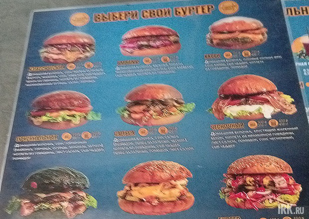 Но только что же, писать вам про один лишь бургер? Скучно. Взять все пять? Гораздо веселее, только в день обзора у меня никак не подбиралась компания. А сидеть одной в маленькой кафешке, обложившись увесистыми булками (да еще с двойным мясом), — очень странно. И я сделала вот что: один бургер с пылу с жару для чистоты эксперимента съела в кафе, а остальные попросила завернуть с собой. И продолжила дегустацию — где вы думаете? В офисе IRK.ru, конечно. Тем более там меня уже ждал товарищ, готовый обсудить вкусовые качества слегка остывшего фастфуда (уж простите за это). Если захочется на меня поворчать в комментариях, что, мол, кто так делает: судит уже полежавшие бургеры, помните, что я с вами согласна, и серьезно со всех сторон мы рассматриваем только один бизнес-ланч, тот, что в кафе. А все остальное — бонус.