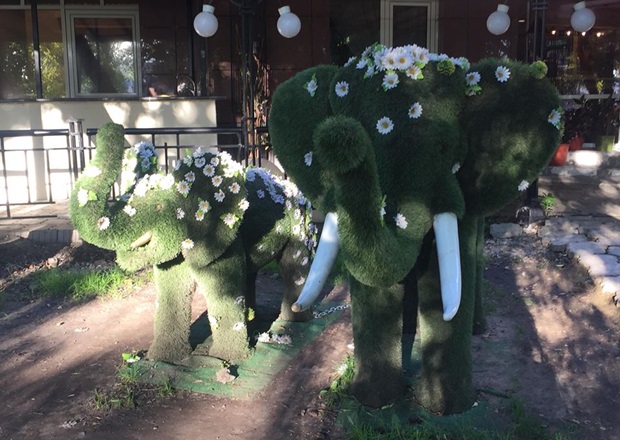 После длинной вечерней прогулки по набережной очень приятно посидеть в кафе, выпить прохладного лимонада и вкусно поесть. Именно на это мы рассчитывали, отправляясь в новое заведение комплекса «Александровский сад» на бульваре Гагарина. Сначала я увидела зеленых слонов: симпатичные скульптуры из искусственной травки с ромашками охраняют вход на летнюю веранду «Шпиль бара». Маленькие столики, мягкие стулья, вид на реку. Для романтического ужина на свежем воздухе — то, что нужно. То, да не то…