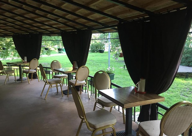 Мы прошли на веранду, и тут первый облом — никакого свежего воздуха не было и в помине. Отчаянно несло, простите, общественным туалетом. Мы так и не поняли, откуда этот запах: рядом с кафе ничего похожего на сортир не было. В основном зале девушка за барной стойкой предложила нам занять любой столик: кроме нас, гостей не было.