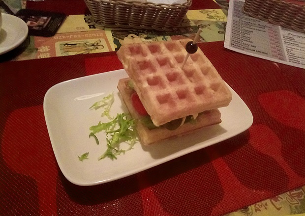 Хотелось порадовать читателей позитивным и «вкусным» отзывом. Но, к сожалению, первый поход в кафе-вафельную, как первый блин, вышел комом. Идея кафе достаточно интересная: конструктор из продуктов, есть основа — вафля, и, добавляя к ней другие ингредиенты, можно получить необычные сочетания. Но шеф, видимо, решил не рисковать и использовал только самые популярные (читай — скучные) варианты. Никакой феерии вкуса вы не дождетесь. Большим разочарованием был и итоговый счет: мы пообедали на сумму более 1800 рублей, что неадекватно дорого для представленных блюд. Вернуться в это кафе еще раз или посоветовать его друзьям мне вряд ли захочется. Приношу извинения за фото не самого лучшего качества, при плохом освещении оказалось сложно сделать красивую картинку.