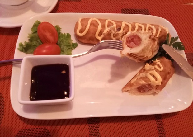 По сытности корн-доги сильно уступают обычной сосиске в тесте, ведь вафля только кажется объемной, на самом деле она тонюсенькая, и охотничьими колбасками наесться можно едва. Так что содержимое тарелки скорее походило на закуску, а не на полноценное блюдо.