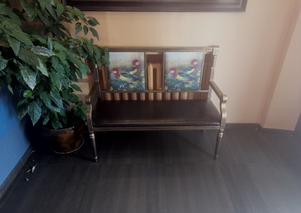 В кафе бельгийского антуража не было и в помине. Не хватало света (несмотря на большие окна), но можно было разглядеть очень простой ремонт: голые стены, кое-где прикрытые картинами. Что на них было изображено, даже не обратила внимания. Запомнила только телевизоры, по которым громко транслировался то ли фильм, то ли сериал, а еще — кожаную мебель с яркими попугаями на спинках. Добавь сюда владельцы заведения пышную зелень, клетки с птицами и винтажные детали, интерьер выглядел бы ярче и интереснее, на мой взгляд.