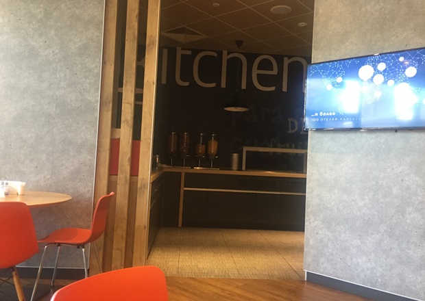 На ресепшен приветливые девушки подсказали нам с подругой, как пройти в ресторан. Оказалось, вход в ibis Kitchen (кухня ibis) прямо налево от стойки.