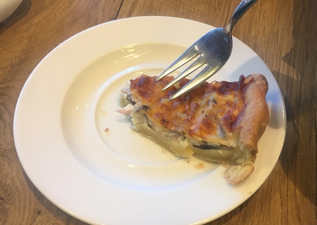 Я не знала, что такое киш лорен. Официант пояснила: это пирог. Представила большой кусок маминого пирога и поспешила заказать блюдо. Ожидания и реальность не совпали — кусочек оказался крохотным. Состоял он из чего-то, напоминающего творог, еще в нем была ветчина и грибы. Вообще вкусно, но мало.