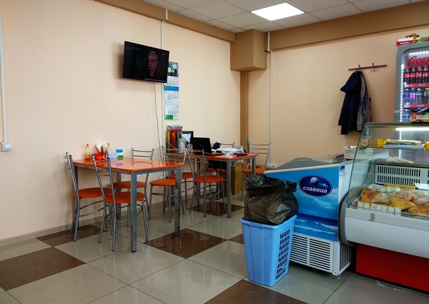 Приезжаю – и что вижу? Натурально, буфет, как на вокзале в 90-е! Всё в лучших традициях: пластиковая тара, большущий мешок с отходами прямо посередине помещения, колоритная крашеная блондинка в возрасте за прилавком. Разница лишь в том, что есть сюда ходят, цокая каблуками, симпатичные сотрудницы большого офисного здания, в котором «Обед-Буфет» расположился. А не сомнительного вида граждане в спортивных костюмах.