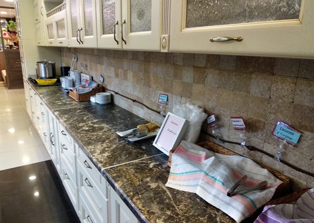 Шведский стол и вправду есть: даже суп наливай себе сам. Это, кстати, мне было немного страшно делать – вокруг чудовищно чисто (если можно так выразиться), а с половника так и норовит что-то капнуть.