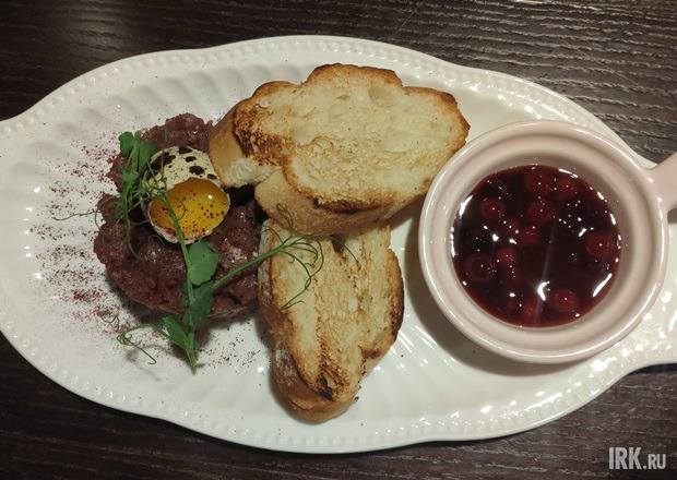 Да это и полноценным блюдом назвать было сложно: мне подали просто сырую рубленую говядину. У нее было очень мало вкуса, кажется, что мясо даже не подмариновали ни капли, только слегка заправили маслом. В сочетании со сладким ягодно-копченым соусом можно было съесть пару ложек. Но больше — нет.