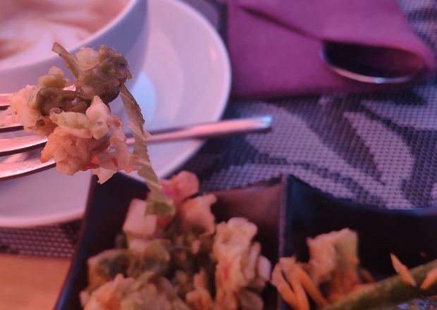 Во-первых, токпокки прекрасны в густом мясном или насыщенном овощном соусе. Здесь повар «увидел» их под сырным соусом. И это было неубедительно. Как клецки с маслом. Во-вторых, клецки эти не то что недоварили — их практически не сварили. Токпокки должны приятно так тянуться, а они не прокусывались, представляете? Вернула это официанту.