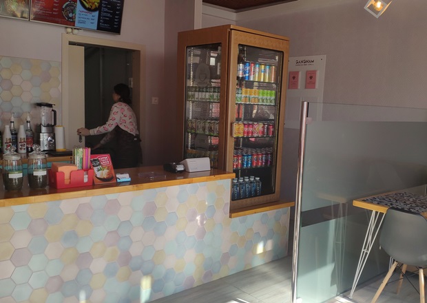 Со второй попытки у меня получилось здесь пообедать. Встретила та же девушка-кассир, серьезная и будто даже испуганная. Помогать с выбором не собиралась, было ощущение, что ей не хочется лишний раз произносить что-нибудь. В итоге, разглядывая цифровой экран с меню и ориентируясь на знакомые названия блюд, сделала заказ. Тому, кто корейскую кухню ни разу не пробовал, пришлось бы крайне тяжело.