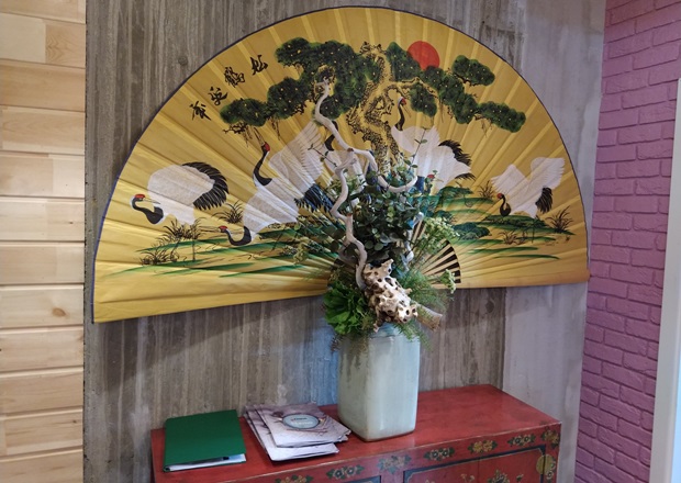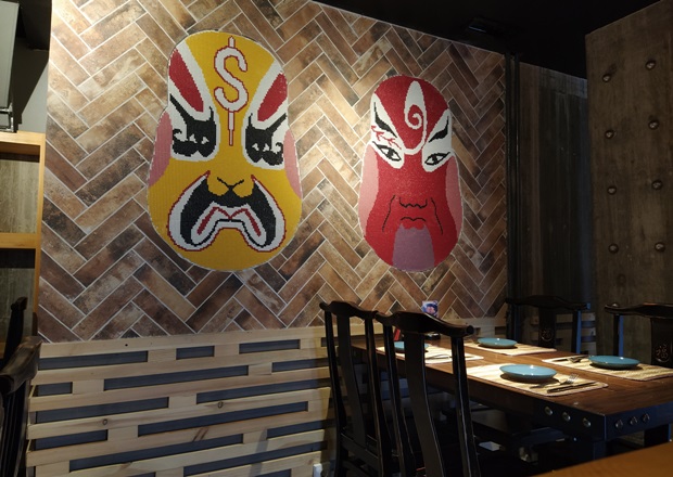 На первый взгляд, дизайн заведения просто бомба: современный, насыщенный яркими красками и деталями. Здесь два зала – в одном расположились три столика, гардероб и барная стойка, в другом – вип-комнаты и уже целая вереница столов. При входе встречает улыбчивый котик Манэки-нэко и целая толпа официанток.
