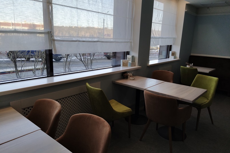Но, во-первых, в этом зале была открыта дверь, которая впускала в кафе совсем не майский ветерок. Во-вторых, в кондитерскую постоянно заходили люди, чтобы купить тортики и другую выпечку навынос. И большую часть времени в метре от меня, пытающейся обедать, стояла очередь из людей в верхней одежде. Такой ситуации не припомню даже в столовых (там люди чаще всего снимают верхнюю одежду на входе).