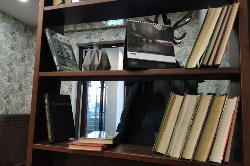 Я отправилась в соседний зал на разведку, чтобы понять, насколько в нем холодно. Чтобы вы понимали: там сидела одна девушка в пуховике. Я не стала ее фотографировать, чтобы не создавать ей еще больший дискомфорт. Там разве что пар изо рта не шел. На этом поиски более уютного места закончились.