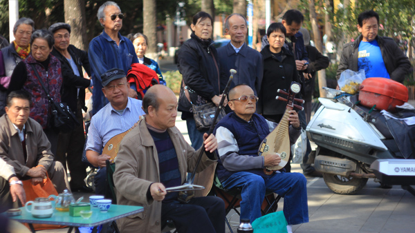 Все это происходило под музыку, раздающуюся из разных мест. В одном из них играли музыканты, в другом пели девушки, в третьем танцевали, в четвертом собрался хор и так далее. Несмотря на середину недели, китайский народ отдыхал. И пройдя через весь парк, мы даже слегка устали от этакого массового отдыха, потому что в голове через полчаса все начинает смешиваться.