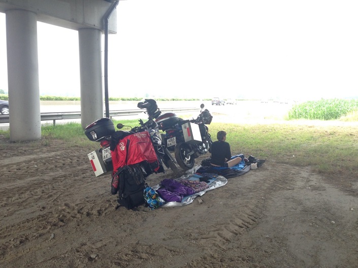 Ближе к вечеру выяснилось, что на стоянки в Москве мотоциклы не принимают, а рисковать и оставлять их на улице мы не стали. Было решено упаковать вещи и двинуться в путь. Итак, в пять часов утра 8 августа мы стартовали с нулевого километра на Красной площади. К этому моменту не спали уже около суток, и первые 50 километров до Зеленограда оказались адом — в голове было какое-то помутнение, глаза закрывались да и реакция была «ни к черту».