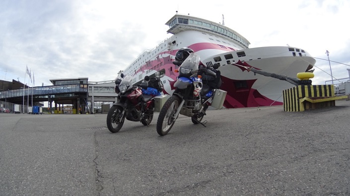 Для путешествия были выбраны два мотоцикла. У Юры — Honda XL700VA Transalp, у меня — BMW F650GS Dakar. Также пришлось позаботиться о международных правах, страховке, визе. Последнюю, кстати, удалось получить без проблем, хотя все кругом говорили, что из-за политического кризиса это сделать будет сложно. В международных правах наши имена и фамилии сотрудники ГИБДД записали не так, как в загранпаспортах, и мы не знали, возникнут ли сложности при прохождении таможни в Финляндии.