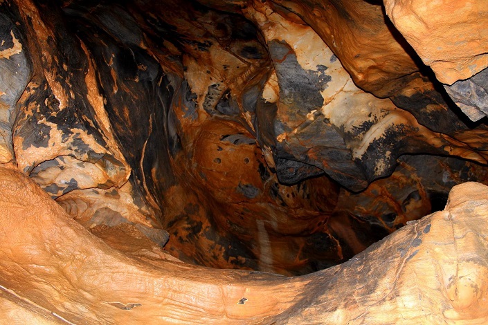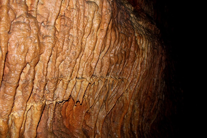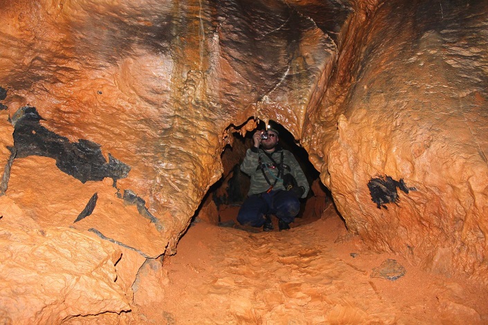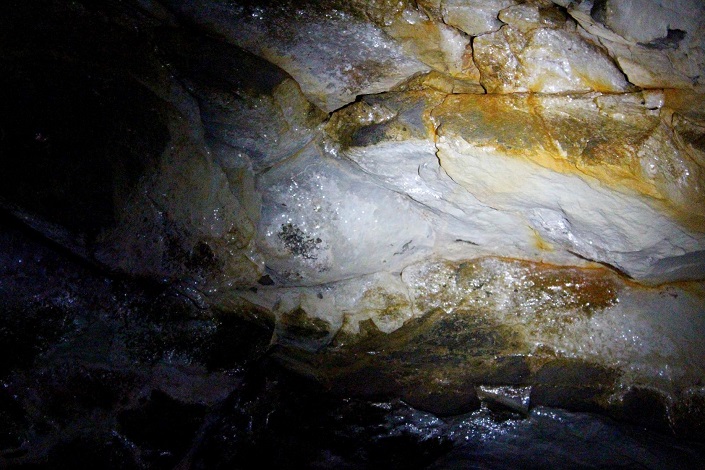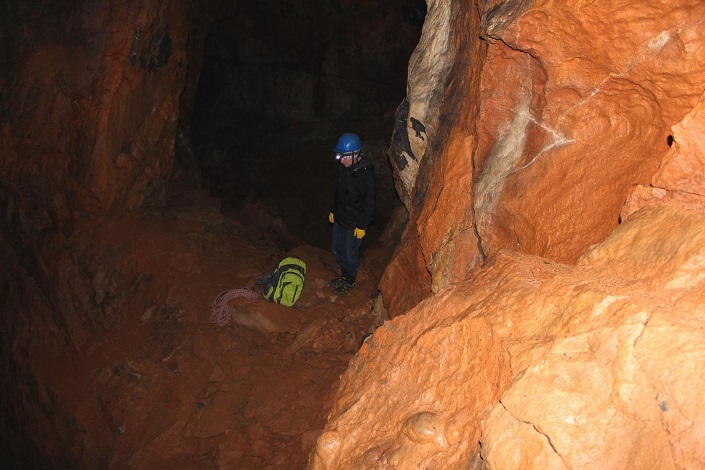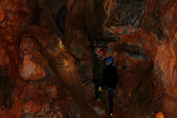 Дошли, переоделись, перекусили и начался спуск. Нам с другом как новичкам было очень интересно. Во-первых, получили хоть и небольшой, но опыт по обращению с альпинистским снаряжением, во-вторых, в пещере очень необычно и красиво. На стенах — наплывы минералов, на потолке и полу — сталактиты и сталагмиты, колодцы, гроты, узкие лазы и широкие проходы, а также разные тупички. Мы ходили по левой системе.