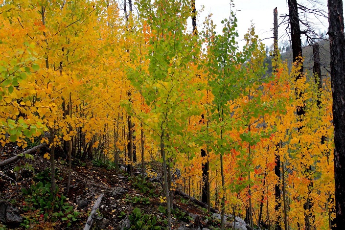 По лесной дороге на 6 километре расположена большая хорошая стоянка, на которой при желании можно переночевать. От этого места предстоит идти пешком. Путь по тропе теперь занимает всего около 15 минут. И дорога эта очень живописная, мы сделали немало фотографий. Осенний лес очень красивый — желто-красный. По советам друзей мы заранее запаслись сменной одеждой и обувью, касками и фонарями. Всего в походе участвовало 7 человек, у троих есть опыт альпинистов и спелеологов, остальные — новички.