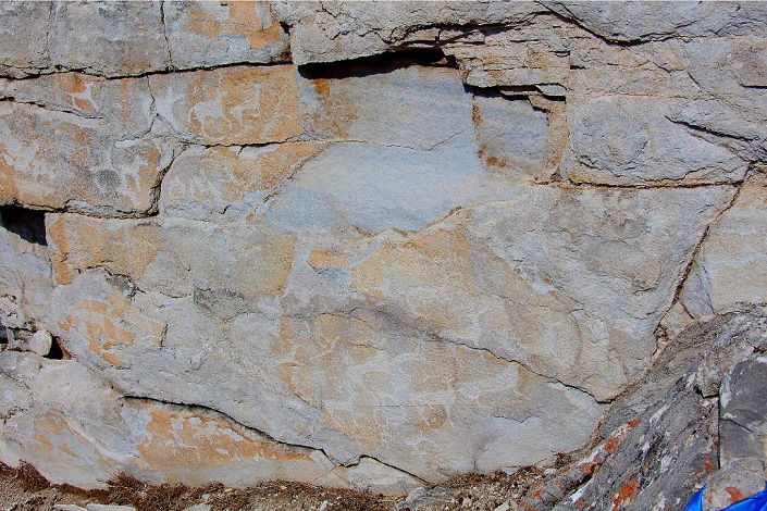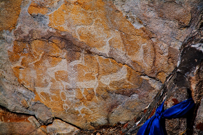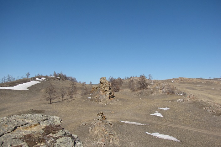 В этом году перед горой Сахюрте (в пяти километрах от поселка Еланцы на левом берегу реки Анги) путь преградил разлившийся ручей, преодолеть его не получилось, но в прошлом году все удалось. Тогда мы забрались на вершину. Там сохранились древние наскальные рисунки и городище, рядом же расположено небольшое озеро Хурай-Нур.