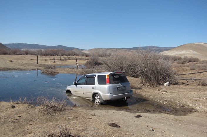 — В начале-середине апреля снег в Тажеранских степях начинает сходить, вполне спокойно можно проехать на обычных легковых автомобилях. Туристов еще нет, начинает оживать природа, просыпаются суслики. Можно даже поприсутствовать на обряде местного шамана Хагдаева, пока он не очень занят.