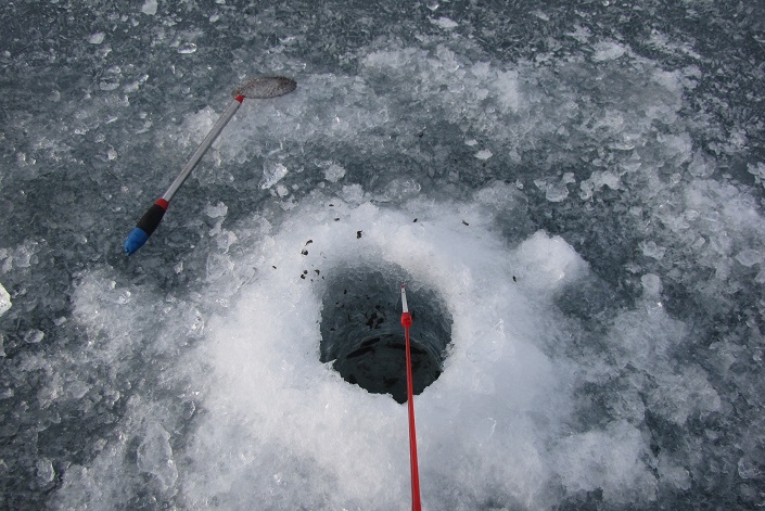 На следующий день нас ждала рыбалка. Опытные рыбаки помогали и показывали, как выбрать место, как сверлить лед буром, настроить снасти и выбрать приманку. Через лунку в нашей байкальской воде видно, как окунь подходит к наживке и пробует ее на вкус. Можно просто опустить защищенную камеру под воду и на экране планшета наблюдать весь процесс. Улов оказался небогатым, к тому же поднялся ветер, и мы двинулись в сторону дома.