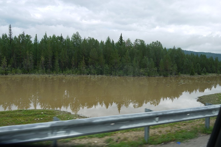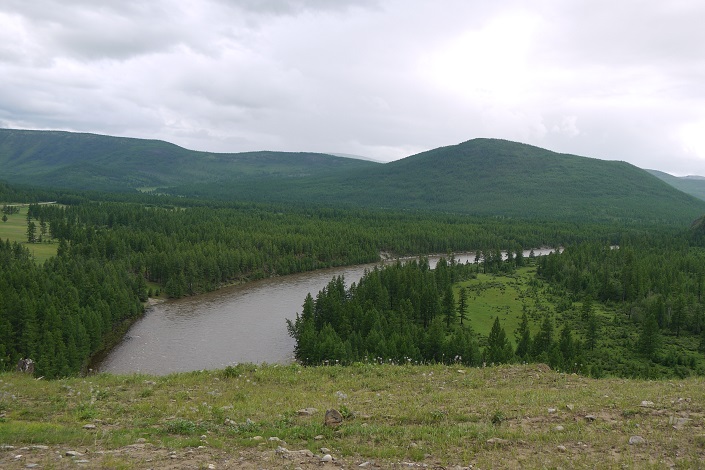 13 июля было решено сделать днем отдыха и съездить налегке на водопад и рыбное озеро дальше по долине Хойто-Гола. Намерения были, но у нас опять трудовой день получился. Дорога была очень сложной, один раз чуть было не легли на бок. Тропинки до водопада как таковой нет — надо пользоваться звериными. Короче, мы устали. Но были и плюсы в виде свежей рыбы и загудая. А также открыли неизвестный нам источник с «железной» водой в конце долины. Представьте: белое каменистое поле и в центре круг радиусом 100 метров из красных камней. Вода очень вкусная.