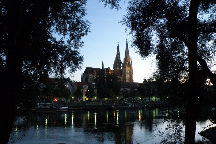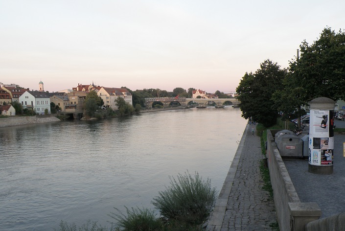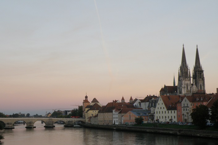 Со скоростью 200 километров в час проносимся по автобану, самое сложное — не пропустить нужный поворот. Быстро читать указатели — хороший навык, но наличие навигатора в машине еще лучше! И вот мы в Регенсбурге, который занимает четвертое место в рейтинге самых дорогих городов Германии (на первом месте находится Мюнхен). Историческая часть города небольшая и в основном пешеходная, вечером воскресенья туристов немного, но очень много местной молодежи, которая собирается в самых колоритных местах, сидят на ступеньках, общаются, смеются и радуются жизни.