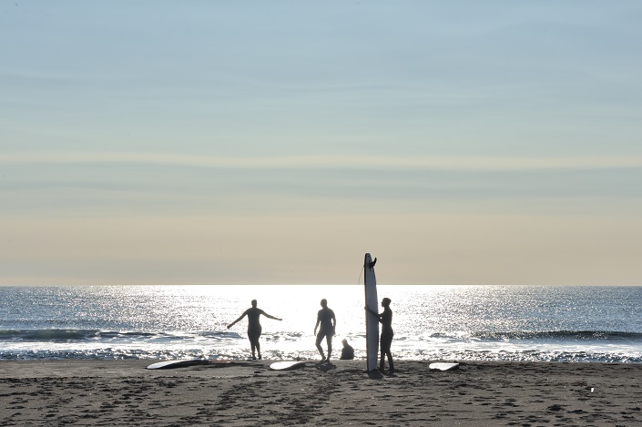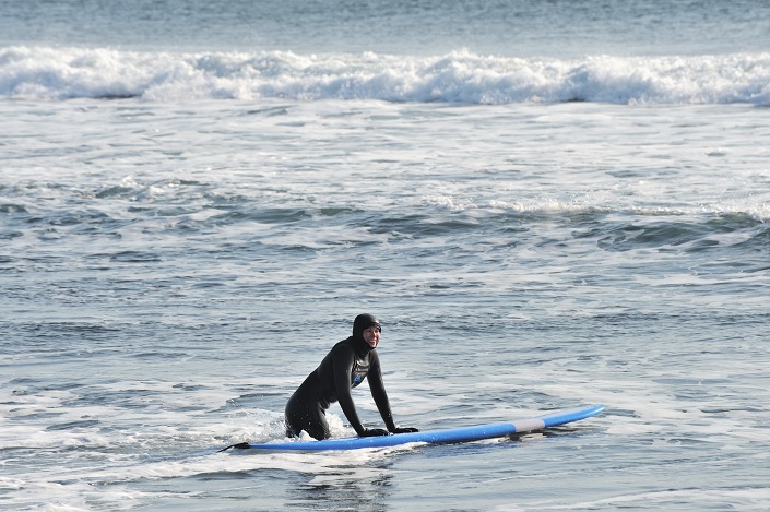 Наспех проглотив завтрак, четыре черные фигуры в таких же черных гидрокостюмах ковыляли по черному песку по направлению к океану, делая вид что несли на голове огромный кусок пенопласта (да простят меня знатоки досок для серфинга, но нам на первый взгляд показалось именно так, и на второй тоже), совершенно обыденное занятие. Уверенный вид — это уже половина успеха.