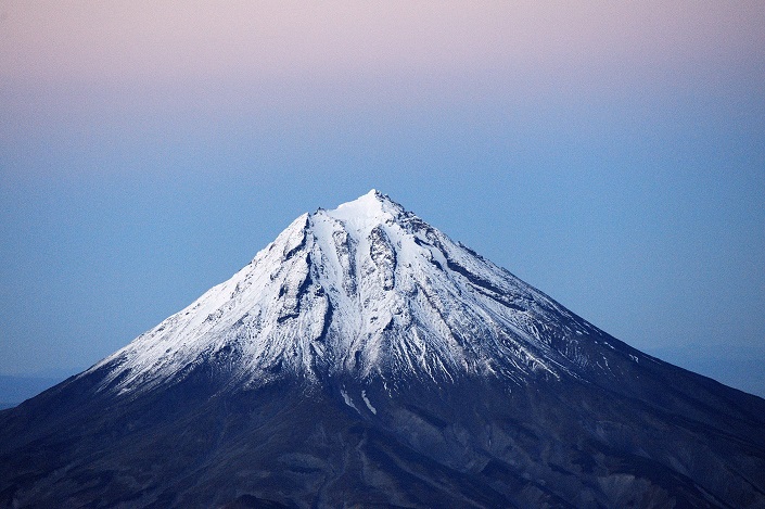 Но вернемся к нашим вулканам. Вулкан Горелый расположен (если верить гайдбукам) в 53 километрах от поселка Термальный и представляет хребтообразный массив высотой 1829 метров. Мы приближались к вулкану, а дело приближалось к вечеру, но это нас не останавливало. Над вулканом не было ни облачка, это большая редкость, и мы, прихватив фонарики (спускались уже в глубоких сумерках), выдвинулись наверх. Подъем занял около 1,5 часов и вот она награда, потрясающая панорама полуострова в лучах заката. Лагерь ставили уже в темноте.