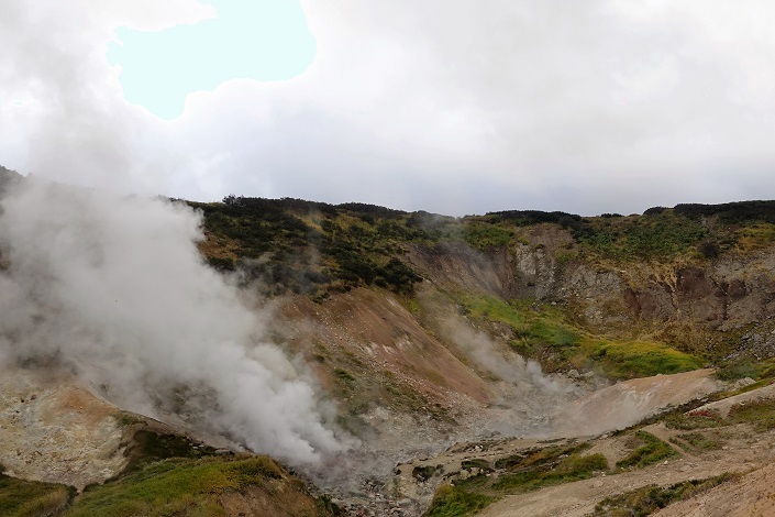 Заночевали мы с обратной стороны вулкана рядом с Мутновской ГЭС. Как нам сказали, это место демо-версия долины гейзеро". Здесь вода бурлит, а земля пыхтит и парит. Просто космос какой-то!