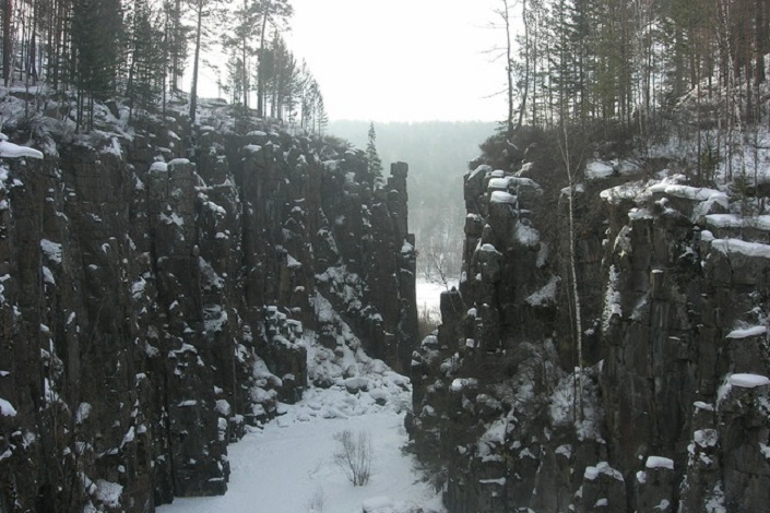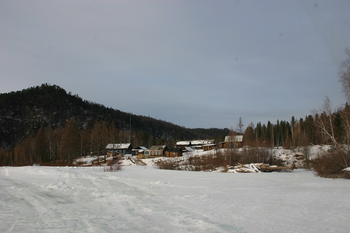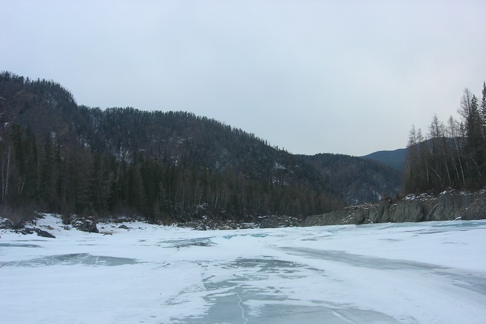 Ближе к поселку был один участок, где река замерзла в виде огромных волн среди булыжников. И мы, как корабли в море, поднимались на гребень очередной волны и опускались вниз. Еще можно отметить, как в этом году нам повезло с погодой — все дни путешествия стояла температура +4, +5. Просто нонсенс для тех мест в это время года (обычно —20, —30).