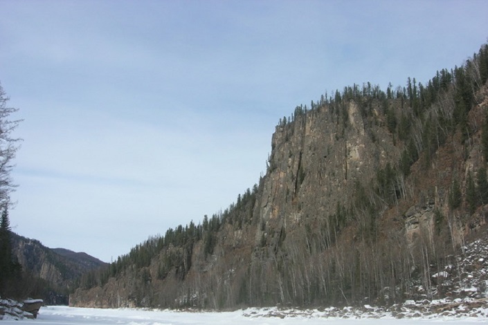 Недалеко от Тулуна мы свернули с трассы и часа через 3 передвижения по поселковым дорогам и тайге спустились на саму реку Уду. Путешествие среди гор по замерзшей реке — одно из сильнейших впечатлений от этой поездки. Мы видим, на какой высоте висят деревья во время весеннего паводка, вспоминаем отчеты водников о преодолении порогов 3-й категории сложности. Водный маршрут сейчас нам дается легко и непринужденно, свирепая река заперта льдом. Лишь памятные таблички на скалах напоминают, какая сложная эта река летом. По пути встречаем колонну «Уралов», которые успевают забросить по этой временной дороге необходимые для поселка товары за эти недели. Встретили рыбаков из Иркутска, приехавших попытать счастье на ленка и налима. Осталась позади метеостанция на Хадаме (не успели передать привет от наших клубных товарищей, которым как-то пришлось заночевать здесь).