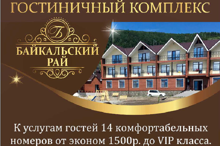 Длинные выходные можно провести на берегу Байкала в гостиничном комплексе «Байкальский Рай»*. Здесь можно отдохнуть от городской суеты, полакомиться шашлыками и свежей рыбой с видом на озеро, а в конце дня расслабиться в русской бане с бассейном. Все майские праздники действует скидка 10 %**. Телефон: 8-964-230-01-00, страница в «Инстаграм».