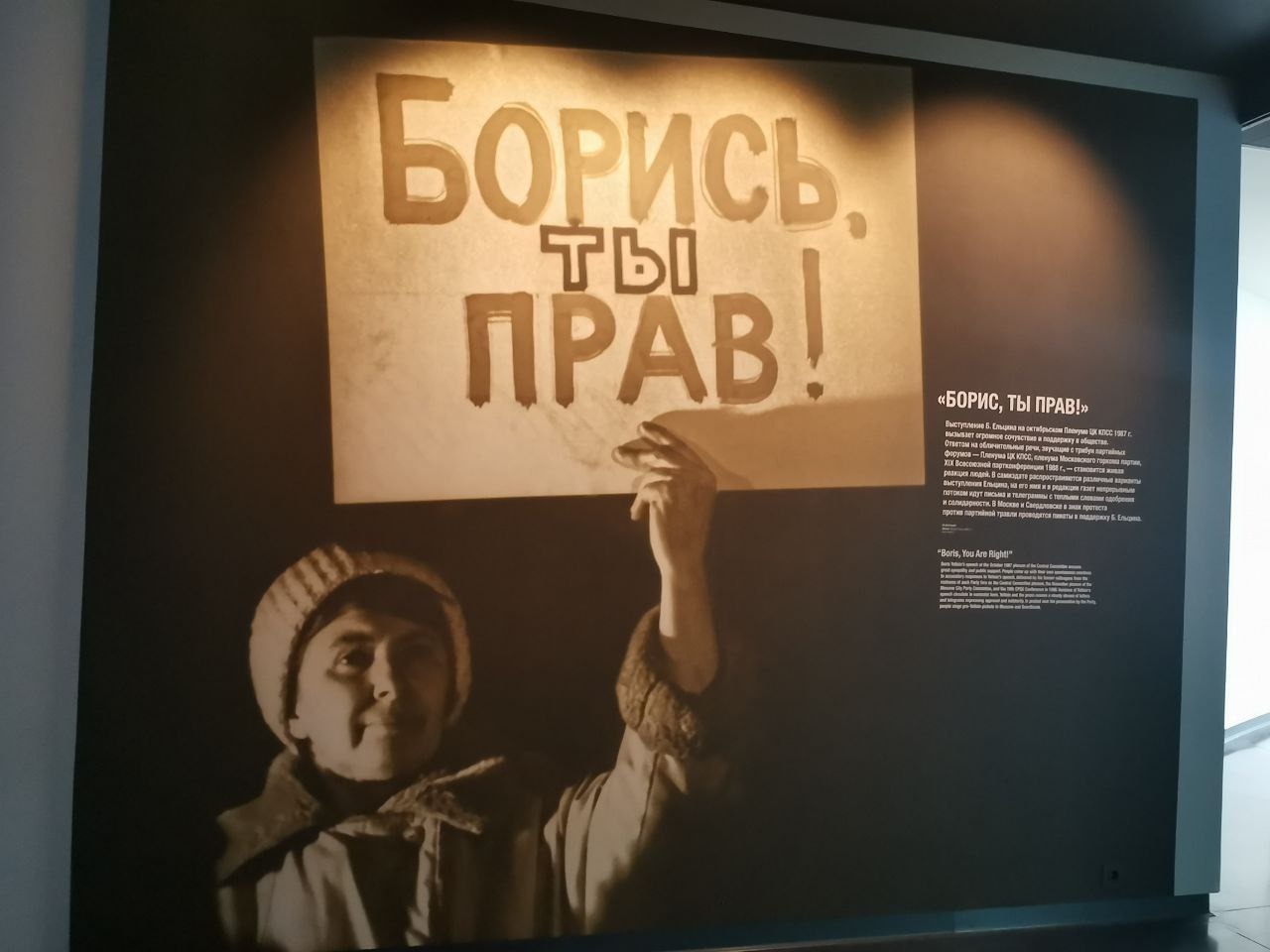 Музей Бориса Ельцина размещен на двух этажах. Рядом с ним находится арт-галерея и панорамное кафе «1991», где можно попробовать блюда по рецептам Наины Ельциной. Я покупала билеты на обзорную экскурсию по музею (300 рублей) и в арт-галерею (100 рублей). В галерее посмотрела работы современных екатеринбургских художников. Обзорная экскурсия идет час. Сотрудник музея рассказывает о его концепции, раскрывает разные «фишки», которые при самостоятельном посещении можно упустить.