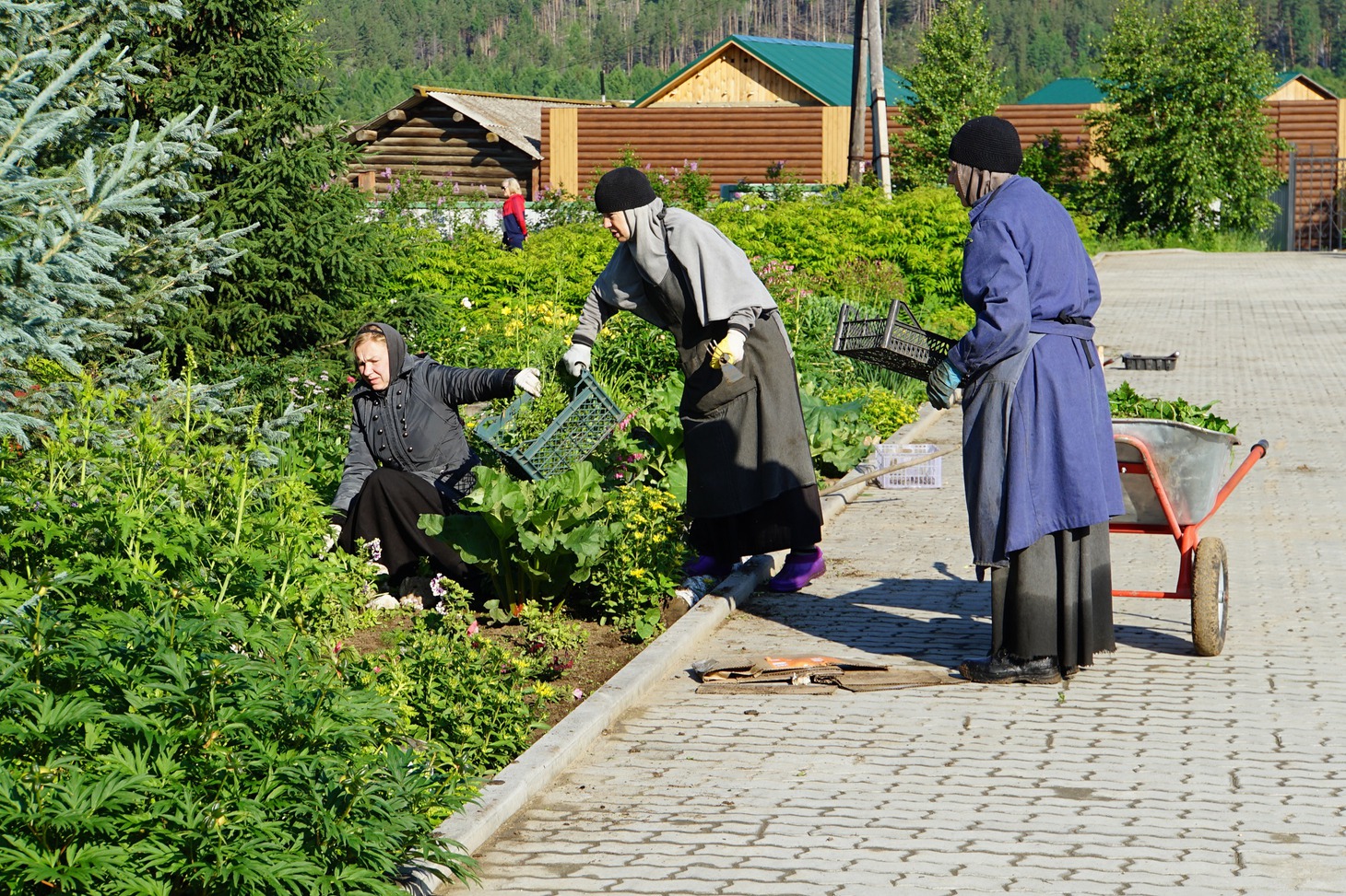 В понедельник с утра у матери Панхарии основное послушание – выпечка чёрного хлеба с добавками. Пока поднималось тесто, она всё время работала с матерью Ниной на огороде. Женщины сажали капусту. Панхария показала нам огромную плантацию клубники, на сбор которой монастырь приглашает всех желающих. В качестве оплаты второе ведро ягоды можно забрать с собой. Весь день мы носились между грядками и пекарней, я даже сравнил это с марафоном, удивившись, – откуда у сестёр спортивная выносливость. Оказывается, в молодости мать Панхария активно занималась лыжами, баскетболом, биатлоном выступала за сборную республики Бурятии в конькобежном спорте. Много лет работала крановщицей, вырастила двоих детей, дождалась внуков, и в 50 лет решила уйти в монастырь. Взяла благословение у батюшки, но муж резко воспротивился.