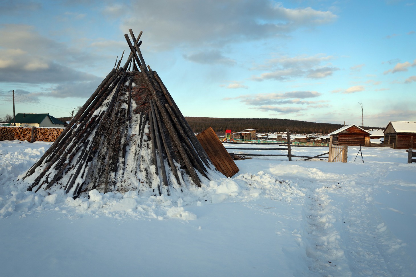 — А подтолкнула нас к этому заммэра Наталья Вышегородцева, — рассказывает Владимир Александрович. — Однажды она сказала: «К вам в деревню приезжаешь, но ни одной юрты не видно, будто и не эвенки здесь живут». Определили место и поставили юрту. Я кочевал с отцом, до школы жил в такой юрте. Помню тазик из берёсты, в котором мать меня купала. С приходом зверопромхозов на месте юрт стали ставить зимовья, и постепенно технология строительства отошла на второй план, а сейчас практически утрачена. Любопытно, что похожие строения в одних местах называются юртой, в других — чумом.