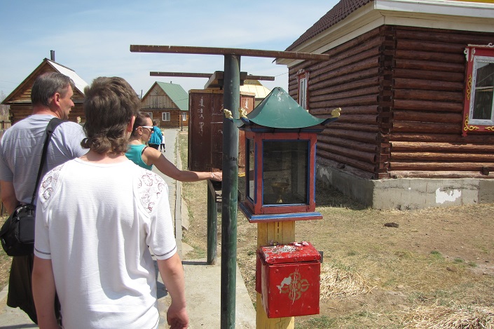 Побывали и в селе Тарбагатай, где находится церковь семейских. Отец Сергий Палий рассказал о своей вере и ее особенностях, об истории староверов, провел замечательную экскурсию в местном музее. Семейские хорошо знали и соблюдали родственные связи. Браки между родственниками были запрещены до 8-го колена, а естественный прирост населения был самым высоким в Забайкалье: женщины рожали от 10 до 24 детей. Староверы сохранили многие памятники культуры и древнерусской письменности. Археологи и этнографы собрали у них древние книги и рукописи, предметы быта и обихода, образцы старинной одежды, найдены уникальные иконы.