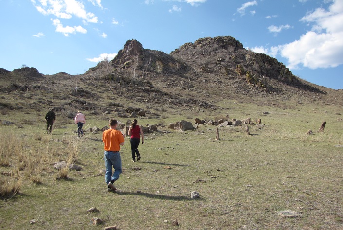 После Тарбагатая посетили могилы кочевников и отправились к скале Табан хурган, что переводится как пять пальцев. Дальше путешествие продолжилось с Меркитской крепости, которая раньше была оборонительным сооружением племени меркитов, сейчас же представляет из себя два ряда каменных оборонительных стен. Подняться наверх можно только по одному пути, он легко простреливается и штурмовать эту гору раньше было очень сложно. Выше, на самой скале, находятся две довольно глубокие пещеры. Особенностью этой местности является то, что все пространство вокруг просматривается как на ладони и подобраться к ней незамеченным просто невозможно. На скале и вокруг нее можно найти старые наконечники от монгольских стрел. Эти же наконечники можно увидеть в музее семейских, в котором мы были до этого. По преданиям бурят, именно эту крепость штурмовал Чингисхан и войско его названного брата Джимухи.