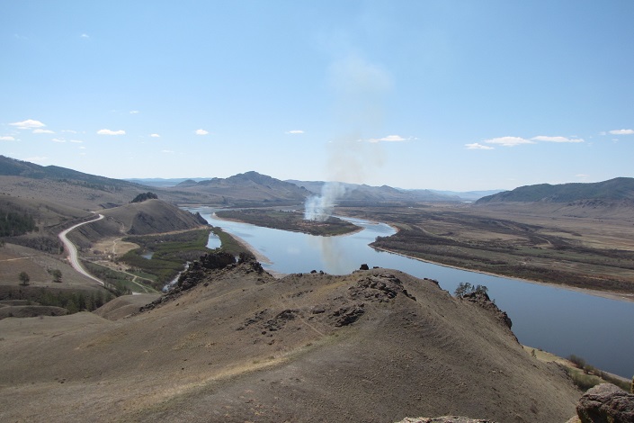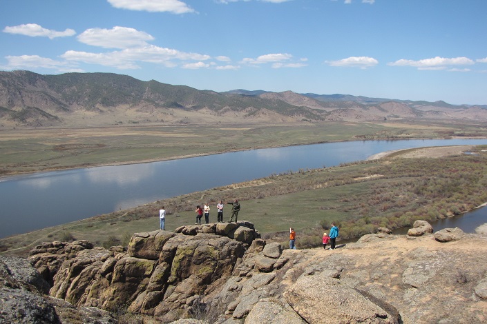 Экскурсия началась с горы Омулевки, которую еще называют Спящим Львом. И правда, если присмотреться, то можно заметить сходство с этим грациозным хищником. Cклон горы покрыт редкими растениями, занесенными в Красную книгу. Отсюда открывается живописная панорама долины Селенги.