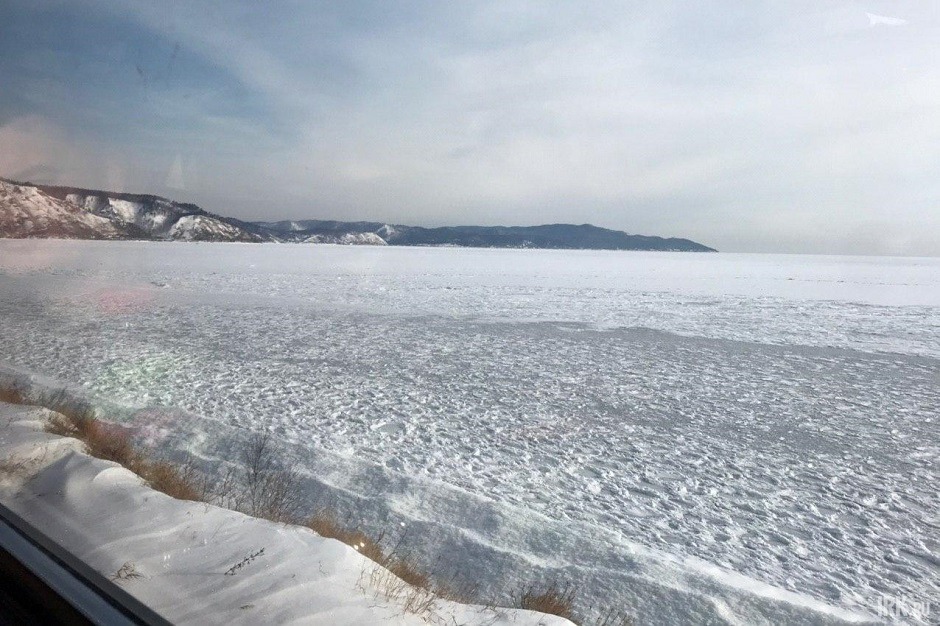 Предстояло преодолеть 84 километра по железной дороге с четырьмя остановками длительностью до часа каждая. Нам повезло — стоял солнечный безветренный день, и из окна «рашки» мы любовались блистающими торосами и голубым гладким льдом Байкала.